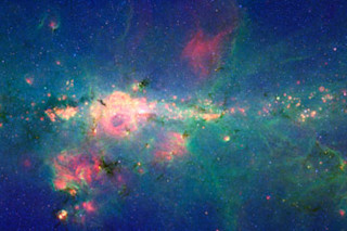 Infrared light emitted by the stars cuts through the gas and dust and allows astronomers to detect stars shrouded in the interstellar mists [Discovery News].