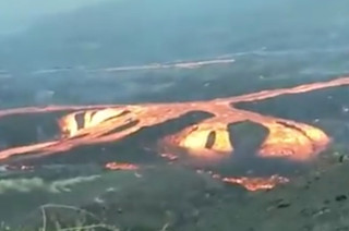 so far is what we expect from shield volcanoes formed at ocean hot spots like the Galapagos: fissures and lava flows. The lava flows have quickly reached the ocean where video shows the rivers of lava created laze plumes and volcanic lightning