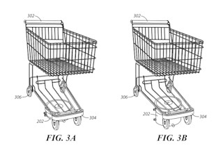 The Roomba-like device, seen under the cart, would slide into position and pull the cart. (Credit: U.S. Patent Office) If it has wheels, there’s a good chance someone, somewhere is going figuring out how to make it roll on its own. Last week, for example, the United States government granted Walmart’s patent request (thank you, Patent Yogi) for a system of self-driving shopping carts. Forget yanking carts from a train of clanking metal, or wheeling the things back to their corrals after your car is loaded. The carts themselves won’t change; instead, a fleet of Roomba-like transport units would slide under carts and ferry them through the store. According to Walmart’s patent request, customers will be able to summon one of these cart-pullers — each equipped with cameras and sensors — with their “user interface device”, perhaps a smartphone app, and a motorized unit will attach to a cart parked in a docking station and pull it to the customer. Once customer and cart meet, the transport unit will serve as a personal store escort. For example, customers could wirelessly beam their shopping list to their cart chauffeur and it’ll guide them through the store item-by-item, according to the request. Can’t find what you’re looking for? Just type it into your “interface device” and follow your cart. The transport units, in theory, will also round up carts adrift in the parking lot and return them to their docking station. Just as a reminder, this is only a patent. It isn’t clear when, or if, the system will be deployed in Walmart stores. However, it does offer a glimpse at the future of shopping — if you still shop in brick-and-mortar stores. Let’s just hope the cart taxi sensors and cameras will be sensitive enough to avoid slamming a cart into the back of your ankle.