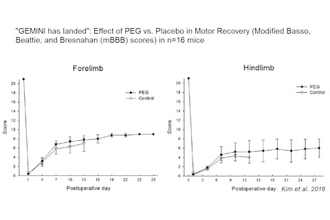 In 2015, Canavero announced his intention to carry out the pioneering operation, with the head being that of a Russian man, Valery Spiridonov, who has a muscle degenerative disease. The source of the donor body was never specified. More recently, Canavero has said that a Chinese patient will be the first to have their head transplanted. So who is Sergio Canavero, and what's his background? The Turin-based Italian neurosurgeon has had a productive research career: his name appears on 112 papers on PubMed, dating back to 1990. His main interest is pain, specifically central pain syndromes, in which damage to the brain or spinal cord leads to chronic, often difficult-to-treat pain. Canavero's first paper on head transplantation was published in 2013 (in a journal that regular readers may befamiliar with.) However, his interest in radical transplant surgery dates back 25 years: in 1992, Canavero published a speculative paper on "Total eye transplantation for the blind: a challenge for the future." What if, Canavero asked, it were possible to implant an donor eye into a recipient's socket, before connecting it up to the brain by encouraging the optic nerve to grow into place? He never revisited this idea. The 2013 paper introduced two acronyms which Canavero has gone on to use regularly. HEAVEN, or "HEad Anastomosis VENture", refers to the overall project to carry out the first human head transplant. GEMINI, the etymology of which is unclear, is the key procedure that will make the head transplant possible: the fusion, or connection, of two severed spinal cords into one. Spinal cord fusion or reconnection is, to put it mildly, a technical challenge. It's the holy grail of spinal cord injury - the power to reconnect a severed spinal cord could allow countless people to move, and feel, again. But it isn't easy. Canavero claims to have cracked the problem. In September 2016, Canavero announced that"GEMINI has landed - spinal cord fusion achieved." The secret, he says, is a combination of a very sharp cut - to minimize damage to the nerve cells - and PEG, polyethylene glycol. PEG, Canavero says, has "the uncanny capacity to literally re-fuse neuronal cell membranes submitted to mechanical disruption." In the same issue of the journal, Canavero's South Korean collaborator C-Yoon Kim reported that PEG produced "partial restoration of motor function" in mice whose spinal cords were severed. The Kim et al. paper is to date the only evidence that Canavero's GEMINI works, and the results are not very impressive. Compared to a control group, the PEG-treated mice recovered slightly better from the lesion, but the difference wasn't statistically significant. All of the control group and 3/8 of the PEG group died within 2 weeks
