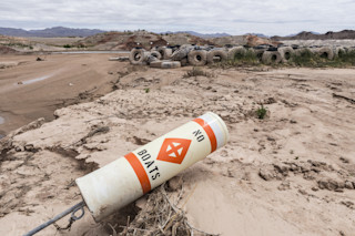As the water levels drop, it’s no surprise that several sunken boats have been discovered. Speed boats and fishing boats once submerged, are now baking in the desert sun once again. One speedboat was even found sticking out of the mud vertically.