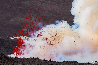 These lava flows reached 2-3 kilometers from their sources over the course of a couple days. Video of the eruption show the Strombolian explosions (more or less, big bubbles of lava popping at the vent) and the long, narrow lava flows snaking downslope from the new fissures.