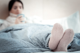 It’s actually healthier to sleep in a cool room, between 60 degrees and 67 degrees Fahrenheit, while anything above 75 or below 54 can keep people awake. But in cold weather, it can be hard to warm up when you’re ready for bed. In the 1600s-1800s, people used bed warmers to address this problem. They filled a metal pan with hot ashes, coals, or stones from a fire. Then they moved the pan around different parts of their sheets to warm them. Now we have modern alternatives. Heating pads, and weighted blankets are two choices. Choosing the right material for bedding also makes a difference. Flannel is comprised of fuzzy fibers that are not only cozy, but trap air pockets, making it the perfect material for cold winter nights. Whatever sleepwear you use, throw it in the dryer for a few minutes, along with a pair of socks, right before bed for instant warmth.