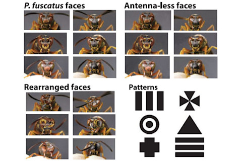 At first glance, we might think that all wasps look the same. But if you look closer at the face of a paper waspPolistes fuscatus, you’ll see a variety of distinctive markings. Each face has its own characteristic splashes of red, black, ochre and yellow, and it’s reasonably easy to tell individuals apart. And that’s exactly what the wasps can do. Michael Sheehan and Elizabeth Tibbetts have shown that these sociable insects have evolved the special ability to recognise each others’ faces. They can learn the difference between different faces more quickly than between other images, or between faces whose features have been rearranged. It’s an adaptation to a social life, and one that a close but solitary relative – Polistes metricus – does not share. Other animals also have the ability to recognise faces, including a variety of mammals such as humans, other primates, dogs and sheep. This skill goes well beyond a general ability to learn shapes or patterns – faces hold a special thrall for us. Our brains process images of faces differently than any other group of image. Now, it seems that P.fuscatus has also evolved the same specialism for faces, independently of us mammals. Tibbetts’ work on wasps dates back to 2002, when she discovered the unique faces of P.fuscatus, followed quickly by similarly diverse visages in other social wasps. She soon showed that the wasps can identify one another based on these patterns, and that they have long-lasting memories for faces. She showed that they use their distinctive faces as badges of quality, which help competing queens to establish a royal hierarchy and avoid costly in-fighting. Now, Sheehan and Tibbetts have found that P.fuscatus learns about faces far faster than other groups of images. They placed the wasps in a T-shaped maze, whose floor was electrified except for a single “safe zone” down one of the arms. The zone was always associated with one of two images, so the wasps had to learn the difference between the two to consistently avoid a shocking step. The images included normal wasp faces, caterpillars, and patterns like triangles and squares. Sheehan and Tibbetts also used altered wasp faces, ranging from those that were just missing antennae, to grotesque Picasso-like jumbles. They found that the social P.fuscatus wasps learned to distinguish wasp faces more quickly and accurately than any of the other images.