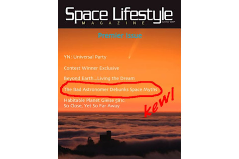A new online magazine has hit teh interwebs, and it's called Space Lifestyle. Oddly, it's not about what spacesuit to wear after Labor Day; it's actually for enthusiasts of space and space travel. The first issue is breezy and fun, with articles about Yuri's Night, Gliece 581C, and oh yeah-- me.