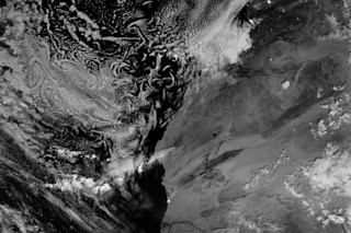 “This is a spectacular satellite image,” said Paul Beggs, an associate professor at Macquarie University, quoted in a post at NASA's Earth Observatory (where I first spotted this image). “I don’t recall having seen an image of von Kármán vortices at nighttime previously, so I would consider it rare.”