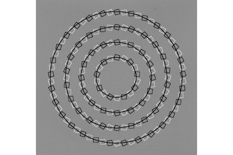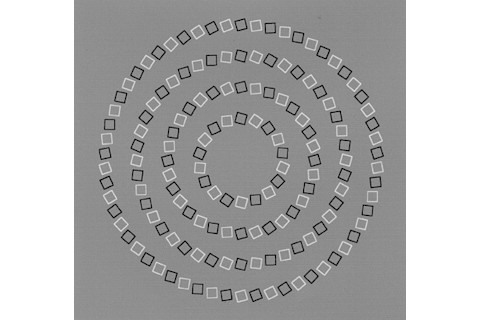 Oh baby! Let your eyes roam over it; the squares appear to form a spiral pattern. But then more carefully trace over the pattern -- block some of it with your hand to be sure -- and you see they are aligned in perfect circles. Still not sure? Let me prove it: all I did was draw in circles.