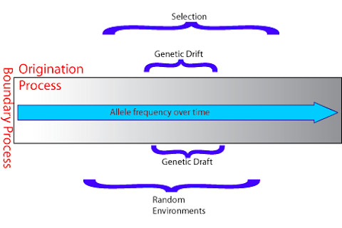 The idea of stochastic training wheels sounds a bit scary, but I am alluding to the series of posts on stochastic dynamics adapted from chapter 5 of Evolutionary Genetics: Concepts & Case Studies by John Gillespie. Using Gillespie's terminology the posts were: Boundary ProcessOrigination ProcessGenetic DriftGenetic DraftRandom Environment There was also another factor which Gillespie points to, which didn't have a particular section and rather loomed over all the other parameters, and that was Deterministic Selection.