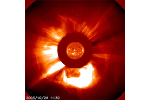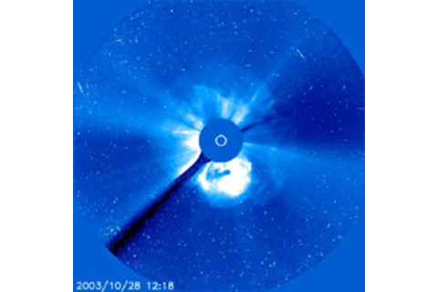 Early in the morning of October 28, the space-based Solar and Heliospheric Observatory recorded an enormous mass of plasma erupting from the surface of the sun and heading almost directly toward Earth. The titanic explosion, which occurred above a short-lived solar magnetic tempest known as sunspot 10486, produced the third most powerful solar X-ray flare ever detected. Within seconds, our planet was bombarded with a flood of intense radiation, which ionized the upper layers of the atmosphere and disrupted radio communication. Immediately after, Earth was pounded by a storm of high-energy protons that interfered with the electronic components of satellites, although no serious damage was reported.