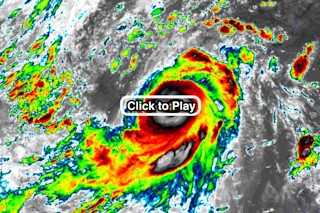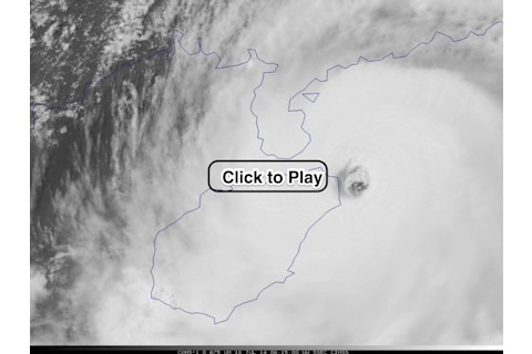 A second animation of Super Typhoon Rammasun coming ashore in southern China, as seen by the COMS-1 satellite. Click to play. (Source: Cooperative Institute for Meteorological Satellite Studies) The eye of the storm is clear and well defined as it approaches and crosses the very northern tip of Hainan Island. From there the storm made landfall on the mainland just to the north. As I write this post on Friday evening (MDT in the U.S.), Rammasun is out over the Beibu Gulf and headed for another landfall, probably along China's border with Vietnam. (For a map of it's projected track, click here) Before hitting China, the storm swept across the Philippines, killing 12 people. Its center came within 40 miles of Manilla, the Philippine capitol. With winds of 105 miles per hour, it was one of the strongest ever to affect the city, according to Jeff Masters, chief meteorologist for the Weather Underground.