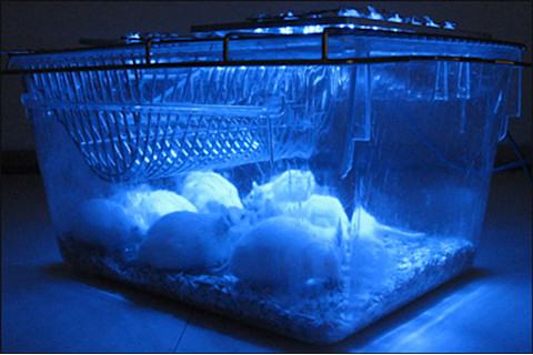 People with type 2 diabetes don’t respond properly to insulin, a hormone that controls the levels of sugar in their blood. Many of them have to take tablets to keep their sugar levels down, while others rely on insulin injections. But in a Swiss laboratory, there are diabetic mice with a more convenient solution. If they need more insulin, all they need is to bathe under a blue light. The mice are the work of Haifeng Ye from ETH Zurich, who has developed a way of turning on individual genes with bursts of light. Blue light in particular sets of a chemical chain reaction in the rodents’ bodies that eventually switches on a gene called GLP-1. It tells the pancreas to make more insulin, makes our cells more sensitive to this hormone, and makes us feel full. Ye’s work is a fusion of two of the most exciting methods in biology: optogenetics, the ability to control events in a cell using bursts of light; and synthetic biology, the building of new biological circuits that don’t exist in nature. In a related editorial, Brian Chow and Ed Boyden (one of the founders of optogenetics) call the new technique “synthetic physiology”. Ye began with a protein called melanopsin, which controls our body clock. It’s usually found in the cells of our retina, but Ye added it to human kidney cells instead. When melanopsin is hit by blue light, it triggers a surge of calcium. Ye rewired the kidney cells so that this calcium surge activates a gene called NFAT, a switch that can itself turn on other genes. By placing any gene under the control of NFAT, Ye can switch it on for specific chunks of time using beams of blue. To prove that this could work, Ye engineered his cells so that NFAT switched on the GLP-1 gene. He implanted the cells just under the skin of diabetic mice and placed them in a blue-lit chamber. A few hours later, their insulin levels shot up and their blood sugar levels went down (even if they’d taken a shot of sugar first). Ye’s study is no cure for diabetes yet. It’s a proof-of-concept – baby steps for a technique that has yet to break into a stride. For a start, surges of calcium do all sorts of things in our cells, so the burst of blue light may have unintended consequences that the team haven’t spotted yet. Martin Fussenegger, who led the study, says that concerns over side effects kept them from starting the project for a long time. “But when we finally did it, we observed no problems at all,” he says. Ye and Fussenegger are looking for industry partners to develop the technique for use in the clinic. In the meantime, they are focusing on a different application – manufacturing drugs that are difficult to produce. Again, they showed that this is possible. They rewired their cells to produce a protein called SEAP, by growing them in a vat (a “bioreactor”) and programming a blue light to shine upon. By controlling the patterns and timing of the light, they could create exacting amounts of the protein over a specified period of time. This level of control is a big challenge for the pharmaceutical industry. Ye achieved it with ease, and he did so without having to add any extra ingredients into the growing cells.