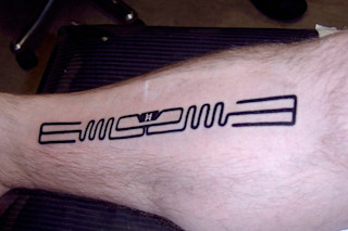 Carl: RFID stands for radio frequency identification. RFID tags, which are embedded in many of the products sold today in stores, are programmed to store information about them. To get the information, you point an RFID reader at the tag and release a burst of radio waves. The energy from the waves powers up the tag, which then sends back a signal of its own. Paul's RFID tattoo says a lot about him now, but, if he wanted, it could say a lot more. Maybe too much. Click here to go to the full Science Tattoo Emporium.