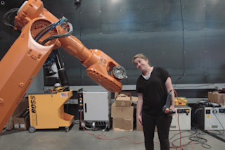 Madeline Gannon plays with her motion-capture-equipped robot. (Credit: Madlab)