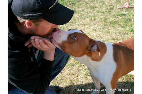 a volunteer socializing Teddy--a gorgeous pitt bull looking for his forever home.