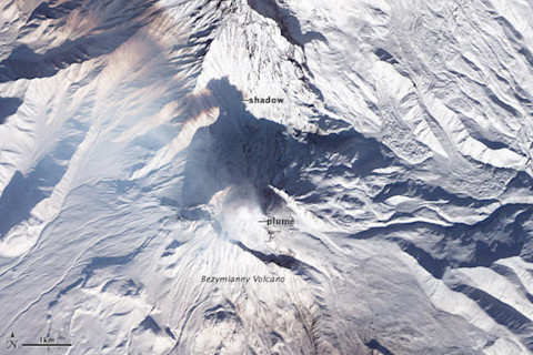On NASA's Earth Observatory site, a picture was just posted that's too pretty not to share. It's a plume escaping from the Bezymianny Volcano in Kamchatka on November 25: