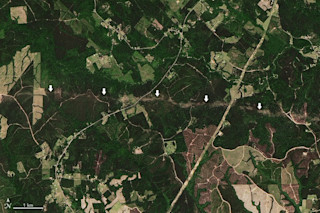 The trail of damage visible in the image was caused by an EF-2 tornado that cut through Jasper and Newton counties in Texas, with peak winds of 130 mph. It damaged roofs and snapped trees along a 37-mile-long track.