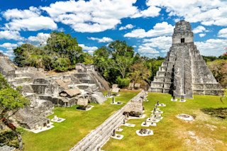 Also standing are the pyramids, similar to their Egyptian counterparts in basic design but different in finish. Constructed at a slightly steeper incline, their exterior is as richly decorated as the rooms inside. Mayan pyramids were mainly used for religious purposes, and tombs for dead leaders. Tikal even had several courts for playing tlachtli or pok-ta-pok, a traditional Maya ball game where players used only their elbows, knees, and hips.