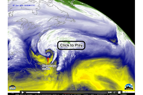 An animation of imagery from the GOES-13 satellite shows the evolution of a cyclonic storm between January 6 and 14, 2015, that culminated in the formation of Hurricane Alex in the North Atlantic Ocean. (Source: Satellite Blog of the Cooperative Institute for Meteorological Satellite Studies, University of Wisconsin, Madison) Since 1851, records show that just two hurricanes have churned through the Atlantic Ocean in January. Until yesterday, that is, when a cyclonic low pressure system born off the U.S. southeast coast early in January evolved into Hurricane Alex. After achieving hurricane strength, Alex subsided to tropical storm strength, coming ashore today as a tropical storm in the Azores, according to the National Hurricane Center: