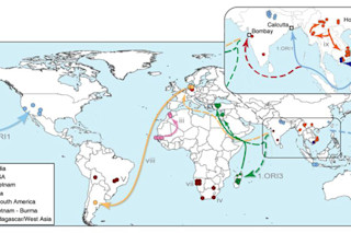 Three times the plague has appeared in deadly force. And all three times, scientists have found, the disease-bearing bacteria originated in China and spread across the world through different routes. The plague's most famous appearance came as the Black Death in 14th century Europe, when it wiped out nearly a third of the population. But it also struck as the Justinian Plague in the Byzantine Empire of the 6th century, and a less severe outbreak spread around the world and reached the American mainland in 1900 (see map above). This week in the journal Nature Genetics, Mark Achtman and colleagues rebuilt the evolutionary history of the bacterium Yersinia pestis, the cause of bubonic plague, and traced all three major waves of plague back to a starting point in China.