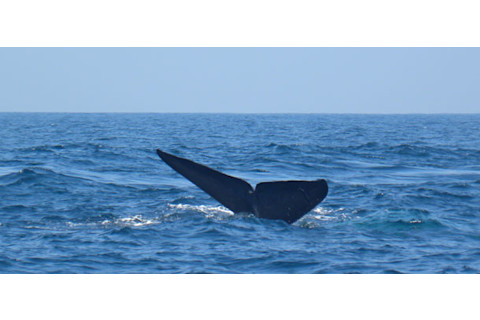You cannot talk about blue whales without launching into a litany of breathless stats (see blue whale facts at the bottom). Thirty metres in length. 180 tonnes in weight. Able to eat half a million calories in a single mouthful. A heart the size of a small car. A major artery so big that a child could fit in it. It’s so big that the so-called “pygmy blue whale” – the Indian Ocean subspecies that we most likely saw – is so-named because it only grows to 24 metres in length. But there’s a difference between reading the numbers and seeing one in the flesh. The first sign of a blue whale is the spout of water that issues forth from its blowhole when it surfaces to breathe. The spout is 9 to 12 metres tall – easy to spot from a distance. The whale stays at the surface for a few minutes, taking repeated breaths. One of the animals we saw did a couple of rolls, possibly to clean itself. Here’s one half of its tail.