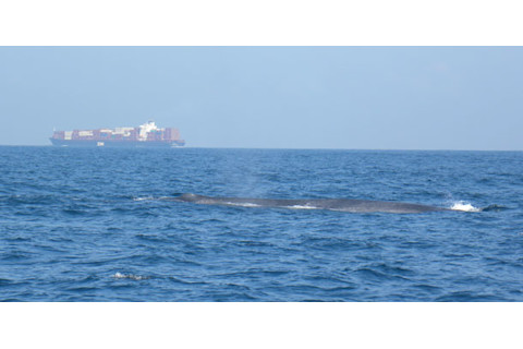 But don’t be deceived by the regular sightings: these magnificent animals are endangered. Counting such an elusive animal is obviously tricky, but the IUCN puts the global total at somewhere between 10,000 to 25,000 individuals. That’s between 3 and 11 per cent of their numbers in 1911. Hunting took a big toll on the whales, but it has now been banned internationally. Still, there are other threats. Large ocean vessels sometimes collide with the whales, and their noise might make it harder for the animals to communicate. Here’s a final photo to remind us of how closely the paths of humans and blue whales often intersect.