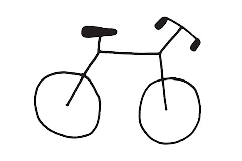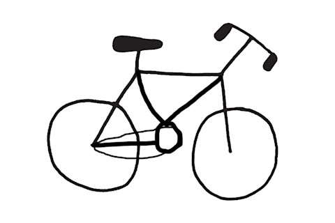 Contemplate the humble bicycle. A bike is a fairly simple device: two wheels, a frame, handlebars, pedals, and a chain (for our purposes we can ignore all the complicated gears and stuff). There’s a good chance you’ve owned one at some point in your life, or at least ridden one. And if you live in a city, you probably see them every day, adorning lampposts or hurtling toward you as you cross the street. You know a thing or two about bicycles, right? So this should be a piece of cake. Below is a doodle of a bike, but it’s missing a few key parts. I just want you to fill in the rest. Sketch in the missing bits of frame, the chain, and the pedals. It doesn’t matter if your lines are a bit wobbly. This isn’t a test of artistic ability. Do it in your head if you don’t have a pen handy. I just want you to indicate roughly where the different bits ought to go to make the bike work.