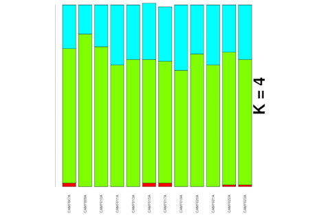 After the second Henn et al. paper I did download the data. Unfortunately there are only 62,000 SNPs intersecting with the HGDP. This is somewhat marginal for fine-grained ADMIXTURE analyses, though sufficient for PCA from what I recall. That being said, the intersection with the HapMap data sets runs from ~190,000 SNPs, to the full 250,000 SNPs (this makes sense since the Henn et al. #2 data set has some HapMap populations in it). So I've been experimenting a fair amount in the past few days, and I thought I would post on one issue which was clear in the original paper, but which I have replicated.