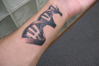 Mike writes, "I know that I'm supposed to provide some sort of explanation, but I feel like everyone can probably tell that this is DNA. Every once in awhile someone will ask what's on my arm, in which case I respond that it's a futuristic staircase. Then they stare quizzically and I laugh."