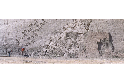 Two titanosaurs walked side by side across this former lake bed in Bolivia 68 million years ago. | Martin Lockley