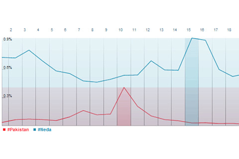Over the past week the political events in Iran have saturated the news. But the reality is that Pakistan still has an enormous refugee problem, right next door to Iran in fact. It's striking though that there is little news coverage of this at this moment, at the same time that the public and media's imagination has been captured by the shocking death of Neda Soltai, the young Iranian woman whose death was caught on video. Below the fold are the number of tweets on #neda vs. #pakistan (currently the #pakistan hash-tag is concerned with a cricket win by their national team).