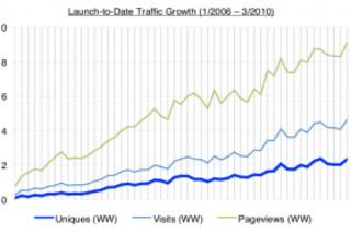 ScienceBlogs^TM just put out a release on their traffic growth. The trend is interesting because after a period of flattening out, 2008-2010 seems to have seen some robust growth again. As I said when I left I do wish SB and many of their bloggers well, and I continue to subscribe to several of their blogs in my RSS as well as the select feed. The network's robust growth is a positive sign when it comes to the transition of science communication from dead tree to the internet. I know that there's been a lot of stress on the part of science journalists as to the sustainability of their enterprise, though that is really just a domain-specific instantiation of the issues in journalism as a whole, but until that works itself out the growth and persistence of science blogging and science-related websites is a good thing. There is a calm after the storm of creative-destruction, and the current science blogosphere is laying the seedbed for future renewal. The outcome may be sub-optimal from the viewpoint of labor, but the consumer will benefit. The growth of internet based science communication means that the pie is growing, and the tide is rising. It isn't a zero-sum game between SB, Nature Networks, Scientific Blogging, Discover Blogs, etc. My main concern personally is that my readership is still strongly Anglospheric, literally hundreds of millions of Chinese have started using the internet while I've been blogging, but very few of them do and can read my content. Due to language constraints this may be a long term structural issue, though the utilization of Google translate + chart heavy posts may be a way to push beyond the Anglosphere a bit. If you want to see the geographic skew, sitemeter is sufficient even with a sample size of the last 100 visitors. Note: Also, please note that the growth can't be attributed only to non-science content. Obviously I can't lay out specific numbers, but blogs which focus on science such as Tetrapod Zoology and Frontal Cortex draw lots of traffic. (via DM)