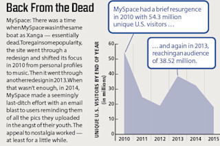 2012-2015: https://www.statista.com/statistics/265099/unique-visitors-to-myspacecom/
