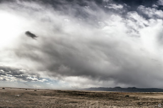 Clouds streamed across the plains from the mountains near Boulder, Colorado as temperatures plummeted and the winds kicked up on Nov. 10, 2014. (iPhone Photomosaic: © Tom Yulsman) I was blowing leaves out of my gutters this morning when the polar vortex arrived — suddenly and with a vengeance. It was 61 degrees and I was in a t-shirt when I clambered up a ladder to my roof. In anticipation of the snow that I knew was coming, I got the gutters cleaned out. Then, within five minutes, the temperature had dropped by what felt like 20 degrees, and the winds began whipping so strongly that I feared for my life as I gingerly stepped back down the ladder. I quickly jumped in my car to find a good spot to take some photographs. As I drove, stiff winds out of the north — I'd estimate the gusts at about 25 miles per hour — were blowing rivers of tumbleweeds across the road. Toward the south, sunny skies were becoming obscured by blowing dust as black, ominous clouds scudded across the plains. You can see these clouds in the iPhone photomosaic above, and in this photograph: