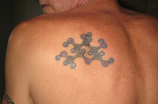 "Here’s a tattoo of glucose (b-D-glucopyranose, to be more exact) that I have on my back. Somewhere out there is a young lady with the same tattoo in smaller version on her ankle. Alas, a lost love…" --A chemistry professor
