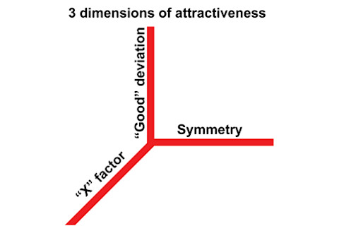 At this point I'd like to introduce a stylized model. In Survival of the Prettiest Nancy Etcoff introduced me to two different types of beauty. The first you should be well aware of: more symmetry means that you are more attractive. Composites of a range of individuals are almost always more attractive than the individuals themselves. This is attributed to the asymmetry which is introduced in development due stochastic, environmental, and genetic factors. Being lopsided is not a good sign of health, whether the cause is endogenous or exogenous. But there is another sort of beauty: that focused on secondary sexual characteristics, which are sex specific. Symmetrical beauty is applicable in the same manner to both sexes. This secondary sexual characteristic component is not. A powerful robust chin which may indicate rugged good looks in a man does not do so on a woman. Large eyes, a small nose, and a pert mouth, may be attractive on a woman, but they may seem ludicrous on a man (unless you're Speed Racer). In the case of symmetry being at the mean is the best. But in the case of secondary sexual characteristics exhibiting some deviation from the mean of your sex in one particular direction is probably ideal. Let's call this "good" deviation.