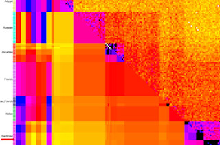 I cropped the image above from the paper Inference of Population Structure using Dense Haplotype Data. The main reason was emphasize the distinctiveness of the Sardinian cluster, on the bottom right. As you can see this population exhibits a lot of coancestry across individuals.