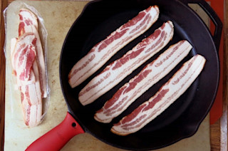 As time passes, you peek into the skillet and notice the bacon begin to brown and bubble. After an agonizing wait, the bacon has finally reached a desired color and crispness and is ready to be consumed. You eagerly bite into a strip of bacon and are met with a pleasantly smoky taste, crunch, and a melt-in-your-mouth sensation.