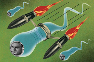 I refuse to age gracefully. That is to say, I refuse to age at all, other than for accounting purposes and to get discounts, which seem to kick in at movie theaters and hotels at 62—six years away. This applies to my sperm as well. I fully intend to maintain excellent spermatic health into my nineties, at least. It’s not just that my hard-wired imperative to perpetuate my genes is driving me to keep my options open; I’m not claiming my genes are anything special. It’s more the principle of the thing. Allowing any part of my body to fade just because I don’t strictly need it anymore is a slippery slope.