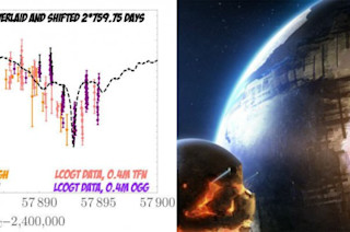 Two ways to look at Tabby's Star: as intriguing data, or as an invitation to flights of fancy. (Credit: David Kipping, left; FantasyWallpapers.com, right) There’s an old saying: "Great discoveries don’t begin with ‘eureka!’; they begin with ‘that’s funny…’" I’ve long attributed the quote to the renowned science popularizer Isaac Asimov. Jason Wright gently corrects me. He has researched the line, he explains, and could find no evidence that Asimov ever spoke or wrote those words. It was a tidy encapsulation of what Wright is about. He is attracted to the peculiar side of science, and he is also a relentless sleuth. Wright, an astronomer at Penn State, is one of the lead researchers investigating the decidedly peculiar flickering object commonly known as Tabby's Star or, in the popular press, as the "alien megastructure star." The star's behavior is so puzzling that Wright included among the possible explanations that a huge construction project is orbiting around it. (Note that he never suggested aliens were the best explanation, merely that the hypothesis could not yet be ruled out.) Lately Tabby's Star has been acting up again, providing intriguing new data but, so far, still no definitive answers. While Tabby's Star continues to vex and excite the astronomical community, Wright is busy thinking about other puzzles as well. I was particularly intrigued by another misbehaving star, by the mouthy name of Przybylski’s Star (pronounced "jebilskee," roughly). If Tabby's Star is the most mysterious star in our galaxy--an epithet endorsed by Tabetha Boyajian, who first described the star's irregularities--then Przybylski’s Star may qualify as the second-most strange and mysterious star around. In this case, the puzzle is the star's composition, which appears to be filled with radioactive actinides, short-lived elements normally found only in nuclear experiments on Earth. I'm a sucker for unexplained scientific anomalies, so I caught up with Wright to hear his thoughts on these astronomical outliers. What follows is an edited version of our conversation. [For astronomy updates, follow me on Twitter: @coreyspowell] Tell me about Przybylski’s Star: What is it that makes this object so unusual? Its spectrum is extremely peculiar. Everyone who’s seen it says it’s the strangest stellar spectrum they’ve ever seen. It’s got an abundance pattern that is very hard to understand. In terms of exactly what abundances of what elements it’s showing us, I don’t know. Some people say there are so many lines you really can’t tell what you’re looking at. [Lines in a star's spectrum are used to identify its chemical composition.] But, they have to be the lines of some elements! And that’s what people try to figure out. Some of those elements appear to be short-lived radioactive isotopes, which makes no sense; such atomic nuclei should long ago have decayed and vanished. How can that be? The identification of short-lived isotopes seems like it must be wrong, because there’s no way to generate them. There is one clever way to hypothesize how they could be generated, however. [The hypothesis is that Przybylski’s Star contains as-yet undiscovered ultraheavy elements, which then decay into the short-lived byproducts we see.] It takes short-lived actinides being in there from being impossible to not totally impossible. The spectroscopic evidence points toward the short-lived nucleotides really being there. Our standard model for stars implies that the observation is probably wrong. But there's a small possibility that some really cool nuclear physics is going on in this star. There's another even further-out possibility, that intelligent aliens put the radioactive elements in there as a kind of chemical signpost... Carl Sagan and Iosef Shklovskii, along with Frank Drake, had raised the idea of looking for radioactive elements like promethium in stars as a possible alien signal. I found that sort of silly; why would aliens dump their promethium in stars? What would the point be? To get our attention, I guess, but I think there are easier ways to get our attention. It's neat that somebody said, Hey we should look for it, and then somebody else found something that seems to match what they predicted. But I wouldn’t put alien technology on a serious list of things that might be going on with Przybylski’s Star. [