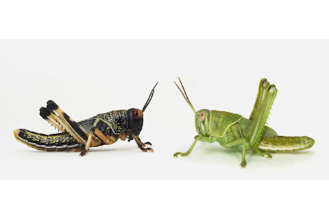 With desert locusts, you get two insects for the price of one. For most of their lives, they are positively antisocial and will avoid other locusts - a far cry from the devastating swarms that farmers fear. Only when the climate is right and food is abundant do they lose their solitary streak. Their numbers increase to the point of overcrowding and that flicks a chemical switch which changes their bodies and behaviour. Within 2 hours, the solitary, green locusts transform into extremely sociable, yellow or red versions that gather in voracious swarms, several billion strong.