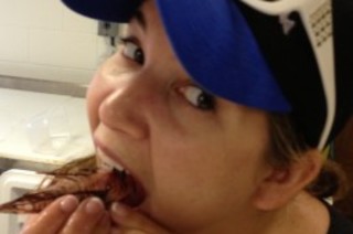 The crowd went wild! As Libby handed out samples, I heard a murmur of approval spread through the crowd. I asked one family what they thought of the fish, and the two kids gleefully gushed about the taste. The dad said he'd definitely buy it, if he could find it for sale somewhere. Similar responses came from every person I talked to: Tender. Flaky. Gentle flavor, not too fishy. Delicious. With the fillets cooked and the crowd fed, it was finally time for the moment four years in the making. I had set aside a piece of lionfish, and now that the rest had been handed out, it was my turn to eat. I was by myself, standing off to the side of the grill. No one there knew just how big this was for me, but I felt the anticipation and excitement building as I held the small piece of fish. I was finally going to earn my badge. I was going to eat my study organism. Greedily, I shoved the entire piece into my mouth at once.