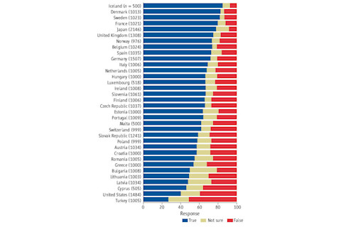 Well, at least we beat Turkey. (Actually I would have expected Turkey to do better.) The study also collected a bunch of other related data. Science reported from the study: