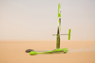 While automakers (and magazines) are shrinking their car designs to become fuel efficient these days, one man decided to forgo fuel altogether and tap into wind power. And now, British engineer Richard Jenkins has broken wind-powered car records, reaching a whopping 126.1 miles per hour when he drove his Ecotricity Greenbird in Nevada. Arguably, the Greenbird doesn’t look anything like a car—people describe it as a “very high performance sailboat.” But while most wind-powered cars use large sails, Jenkins decided to use a solid wing, so that wind could sweep over it and propel the 1,300 pound car into motion. To offset the resulting lift, Jenkins added smaller wings to keep the car on the ground. Jenkins spent a decade developing the model—and finally succeeded on his fifth try. The vehicle’s mainframe is made of a carbon fiber composite, with metal bearings used for the wing and the wheel. He was a happy man last week when he drove his car on a dry lakebed near Las Vegas, and the 30 mph winds powered the car for two miles at more than 120 mph. Related Content: Discoblog: Flying Car DISCOVER: Future Cars
