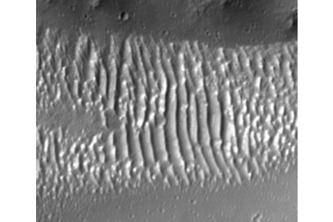 Hmmm. Those are definitely long, thin, raised features, irregular, yet spaced at somewhat well-defined intervals. That sounds like dunes to me. Duh. However, as Ron Nicks (a self-proclaimed geologist and author of that "analysis" on Hoagland's page) said:
