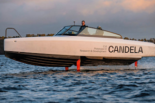 This was an early run of one of the newest all-electric powerboats, the Swedish company Candela's new C-8. The pleasure boating industry, like the car industry, is starting to invest in electrification and weaning itself off fossil fuels. And by designing their boats to use hydrofoils -- essentially underwater wings -- that lift most of the boat out of the water, Candela hopes they can become the flagship of this nascent movement.
