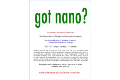 So this is what I was doing this morning. Our speaker is Michael Roukes from Caltech, and he's talking about Nanoscience and Nanotechnology in systems Biology and possible applications to medicine. (Abstract here.) You can imagine how many different types of physicist, chemist, biologist, biomedical engineer, clinical researcher, etc, might be interested in this topic. I want them to come. And that's before I get to all the different flavours of Dean and other senior administrator that might be interested too, as a result of our new Provost Max Nikias, anouncing that Nano-Bio is one of our focus areas for research (and hence funding and new faculty positions) in the coming years. Last week I was in the same position. I invited Nathan Lewis from Caltech to come and tell us about The Scientific Challenges for Sustainable Energy Policy. Again, hugely interdisciplinary and of great interest at the highest levels too, given how it ties together so many departments and schools on campus. I upgraded the whole thing to a campus event which meant extra emails, extra food (raided Trader Joes for excellent good value cookies, to save our budget), and extra stress. I spoke about the organisational aspects of that in an earlier post, and I'll talk about the content of his talk in a short while, as it was excellent, and everyone was buzzed! Which sort of makes this all worth it. That and getting to try out Cafe Pinot afterwards, chatting with some Department heads from Chemical, and Material Science Engineering, and our Dean of Research, Michael Quick (about whom I've blogged not so long ago), and trying out an excellent dish of duck, with interesting conversation and an affordable wine... a combination which was quite agreeable. -cvj