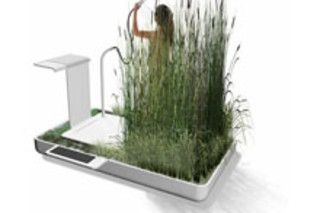 [Designer Jun] Yasumoto, 34, said: "These plants have been proven to be able to remove the chemicals from your shampoo." Using a natural filtering principle called phyto-purification, the bathroom becomes a mini-eco-system by recycling and regenerating the wastewater.