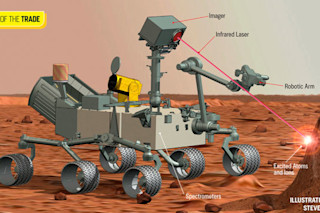 The multipurpose ChemCam will also help Curiosity’s other tools explore more efficiently. Serving as an advance scout, it will scan for noteworthy rocks so the rover’s robotic arm collects only the most intriguing bits of Mars to bring onboard. Then the instruments inside will tease out more information about the rock, such as its crystal structure. “We now have a system that can actively interrogate a rock at a distance,” Wiens says. “We are sure to find out a lot more about Mars.”