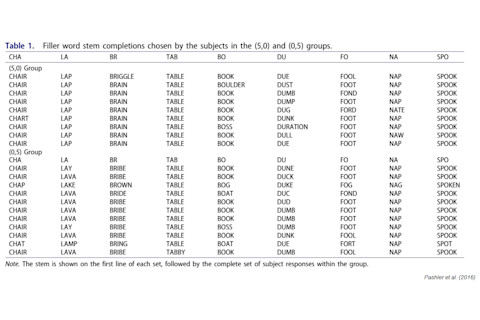 A potential case of data manipulation has been uncovered in a psychology paper. The suspect article is 'Why money meanings matter in decisions to donate time and money' (2013) from psychologists Promothesh Chatterjee, Randall L. Rose, and Jayati Sinha. This study fell into the genre of 'social priming', specifically 'money priming'. The authors reported that making people think about cash reduces their willingness to help others, while thinking of credit cards has the opposite effect. Now, a critical group of researchers led by Hal Pashler allege "troubling oddities" in the data. Pashler et al.'s paper is followed by three responses, one from each of the original authors (Chatterjee, Rose, Sinha), and finally by a summing-up from the critics. Pashler et al. recently published a failure to replicate several money priming effects. Pashler et al. focus on Chatterjee et al.'s Study #3, the last of the three experiments reported in the paper; they report having some concerns about the other two studies as well, but they don't go into much detail. The "odd" data in Study #3 comes from a word completion task. In this paradigm, participants are shown 'word stems' and asked to complete them with the first word they think of. e.g. the stem might be BR___ and I being a neuroscientist might write BRAIN; you might be feeling hungry so you might write BRUNCH. Pashler et al. say that 20 participants (out of 94 who completed Study #3) gave a striking similar pattern of word-stem responses. Specifically, these 20 participants tended to give the same answers to nine 'filler' items, which were chosen to not be affected by the money vs. credit card priming. Here are the raw responses: