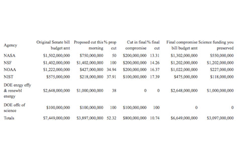 (February 6, 2009) - Well it's been a long, long day with thousands of emails and phone calls, but we are happy to report that your efforts, and those of the rest of the U.S. science and technology community, have paid off in a big way - for the time being.